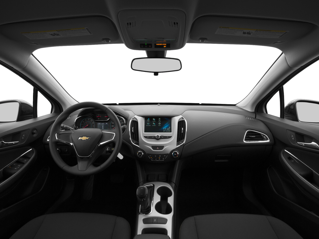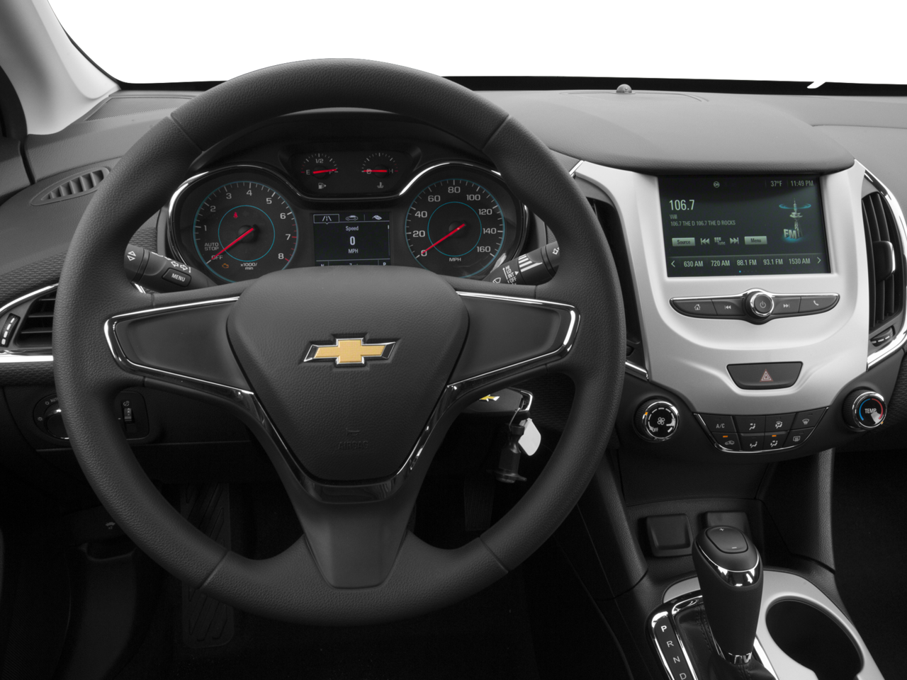 Preferred Equipment Group 1SB, 15 Steel Wheels w/Full Bolt-On Wheel Covers, 4 Speakers, 4-Speaker Audio System Feature, 4-Wheel Disc Brakes, ABS brakes, Air Conditioning, AM/FM radio, Apple CarPlay/Android Auto, Brake assist, Bumpers: body-color, Cloth Seat Trim, Compass, Delay-off headlights, Driver 6-Way Manual Seat Adjuster, Driver door bin, Driver vanity mirror, Dual front impact airbags, Dual front side impact airbags, Electronic Stability Control, Emergency communication system: OnStar Guidance, Exterior Parking Camera Rear, Front anti-roll bar, Front Bucket Seats, Front Center Armrest, Front License Plate Bracket, Front Passenger 2-Way Manual Seat Adjuster, Front wheel independent suspension, Fully automatic headlights, Illuminated entry, Knee airbag, Low tire pressure warning, Occupant sensing airbag, Outside temperature display, Overhead airbag, Panic alarm, Passenger door bin, Passenger vanity mirror, Power door mirrors, Power steering, Power windows, Radio data system, Radio: AM/FM Chevrolet MyLink w/7 Touch-Screen, Rear side impact airbag, Rear window defroster, Remote keyless entry, Security system, Tachometer, Telescoping steering wheel, Tilt steering wheel, Traction control, Trip computer, Variably intermittent wipers, and Voltmeter.