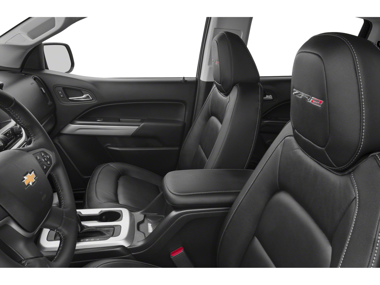 Heavy-Duty Trailering Package, Off-Road Appearance Package, Preferred Equipment Group 4ZR (Black Rear Bumpers, Black Spray-On Bedliner w/Chevrolet Logo, Driver-Selectable Full-Locking Front Differential, Driver-Selectable Full-Locking Rear Differential, and Integrated Trailer Brake Controller), 17 x 8 Aluminum Wheels, 3.42 Rear Axle Ratio, 4-Way Power Front Passenger Seat Adjuster, 4-Wheel Disc Brakes, 6 Speakers, 6-Speaker Audio System Feature, ABS brakes, Air Conditioning, Alloy wheels, AM/FM radio: SiriusXM, Apple CarPlay, Auto-dimming Rear-View mirror, Automatic temperature control, Bose Premium 7-Speaker Audio System Feature, Chrome Recovery Hooks, Compass, Delay-off headlights, Driver 4-Way Power Seat Adjuster, Driver door bin, Driver vanity mirror, Dual front impact airbags, Dual front side impact airbags, Electronic Stability Control, Exterior Parking Camera Rear, Front anti-roll bar, Front Bucket Seats, Front Center Armrest, Front fog lights, Front License Plate Kit, Front reading lights, Front wheel independent suspension, Fully automatic headlights, Heated door mirrors, Heated Driver & Front Passenger Seats, Heated front seats, Hitch Guidance, Illuminated entry, Leather-Appointed Seat Trim, Low tire pressure warning, Occupant sensing airbag, Outside temperature display, Overhead airbag, Overhead console, Panic alarm, Passenger door bin, Passenger vanity mirror, Polished Exhaust Tip, Power door mirrors, Power Driver Lumbar Control Seat Adjuster, Power driver seat, Power Passenger Lumbar Control Seat Adjuster, Power passenger seat, Power steering, Power windows, Premium audio system: Chevrolet MyLink, Radio data system, Radio: AM/FM Stereo w/8 Diagonal Color Touch Nav., Radio: AM/FM Stereo w/8 Diagonal Color Touch Screen, Rear reading lights, Rear seat center armrest, Rear step bumper, Rear window defroster, Remote keyless entry, Security system, SiriusXM Satellite Radio, Speed control, Speed-sensing steering, Steering wheel mounted audio controls, Tachometer, Telescoping steering wheel, Tilt steering wheel, Tow/Haul Mode, Traction control, Trip computer, and Variably intermittent wipers.