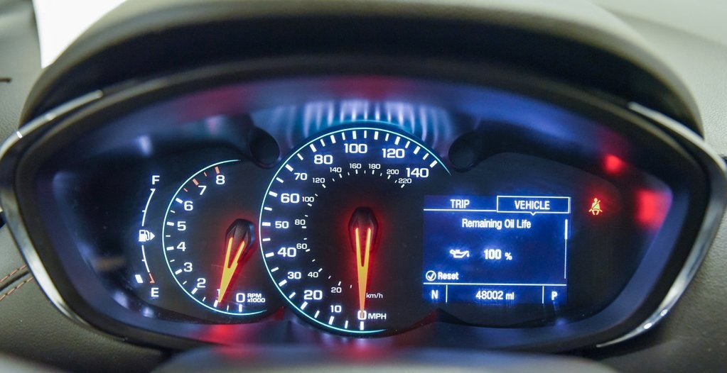- Provides key vehicle information, such as vehicle speed, fuel range, average fuel economy, tire pressure, oil life, trip odometer and warning