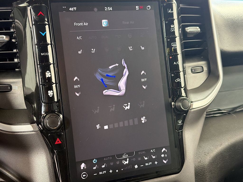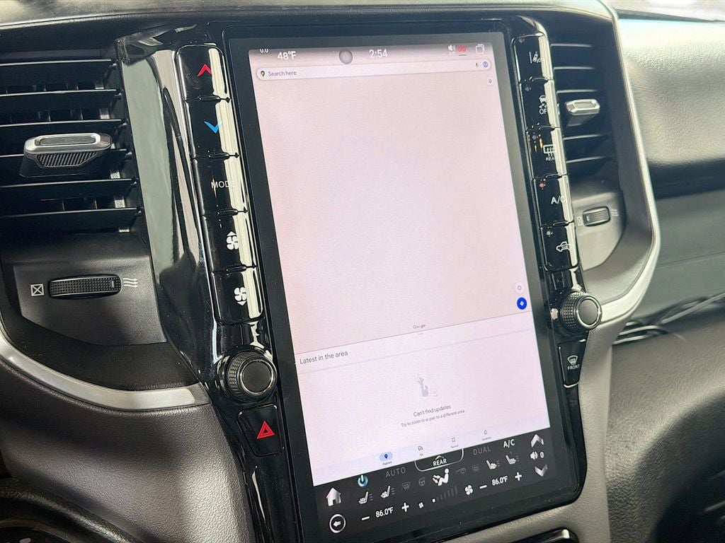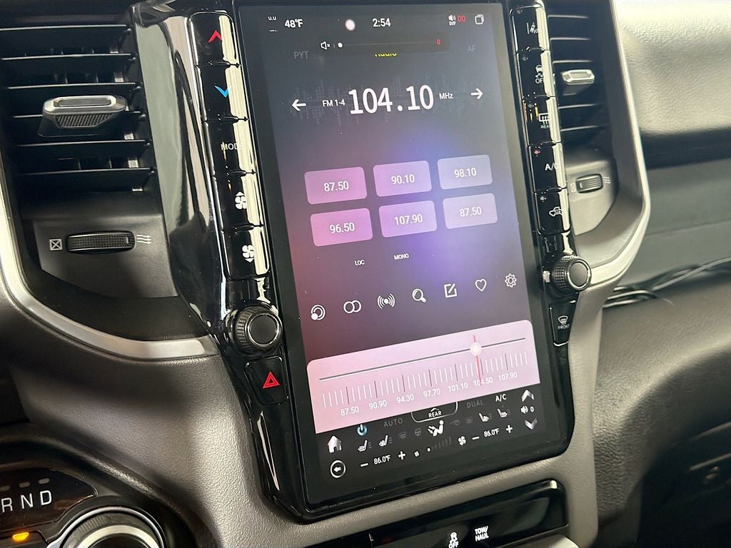 The striking Diamond Black Crystal Pearlcoat exterior and sleek 20 Aluminum Chrome Clad wheels give this Ram 1500 a bold, commanding presence on the road. Step inside and you'll be greeted by a wealth of premium features, including a Uconnect 3 infotainment system with a 5 display, dual-zone climate control, and a leather-wrapped steering wheel.