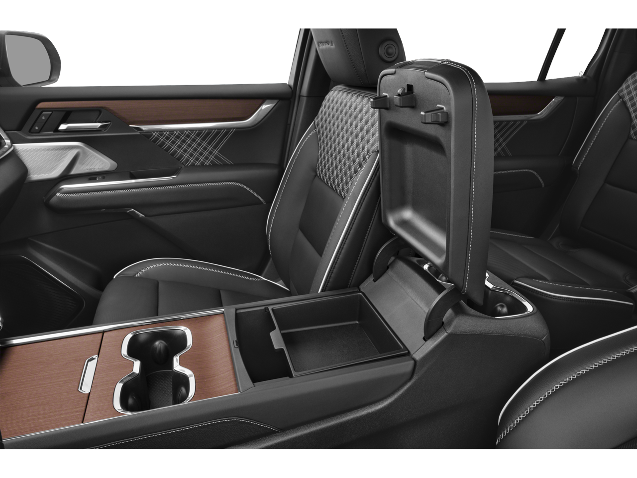 • Console, front center with 4 cup holders and storage, includes rear storage